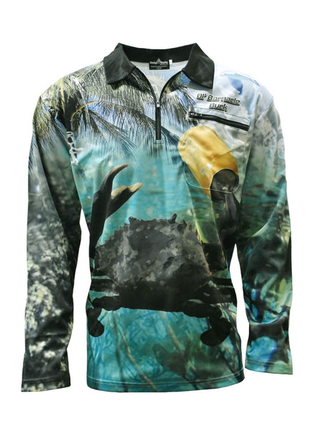 Adult Long Sleeve Zip Fishing Shirts - Grab Ya Crab Plus Size
